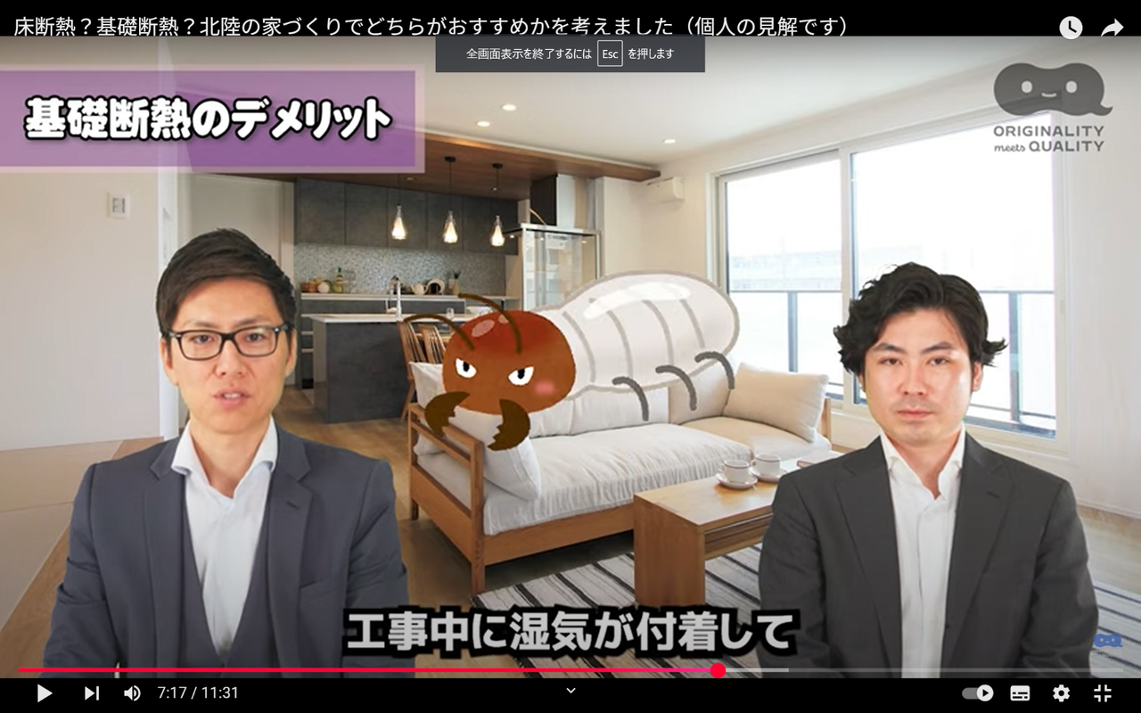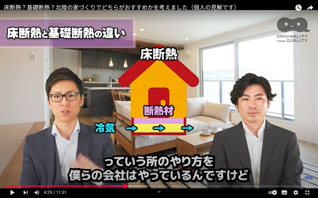 【You Tube】床断熱?基礎断熱?北陸の家づくりでどちらがおすすめかを考えました(個人の見解です)