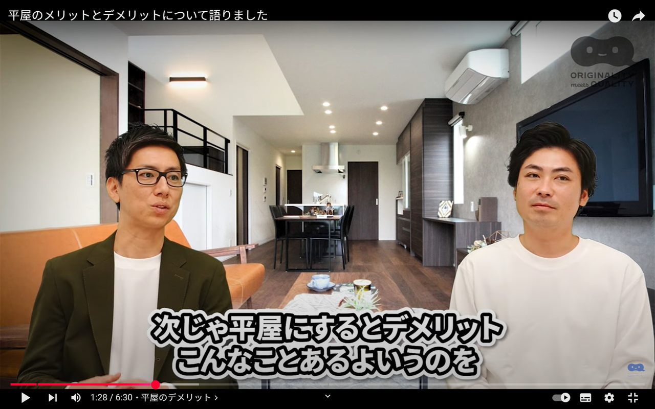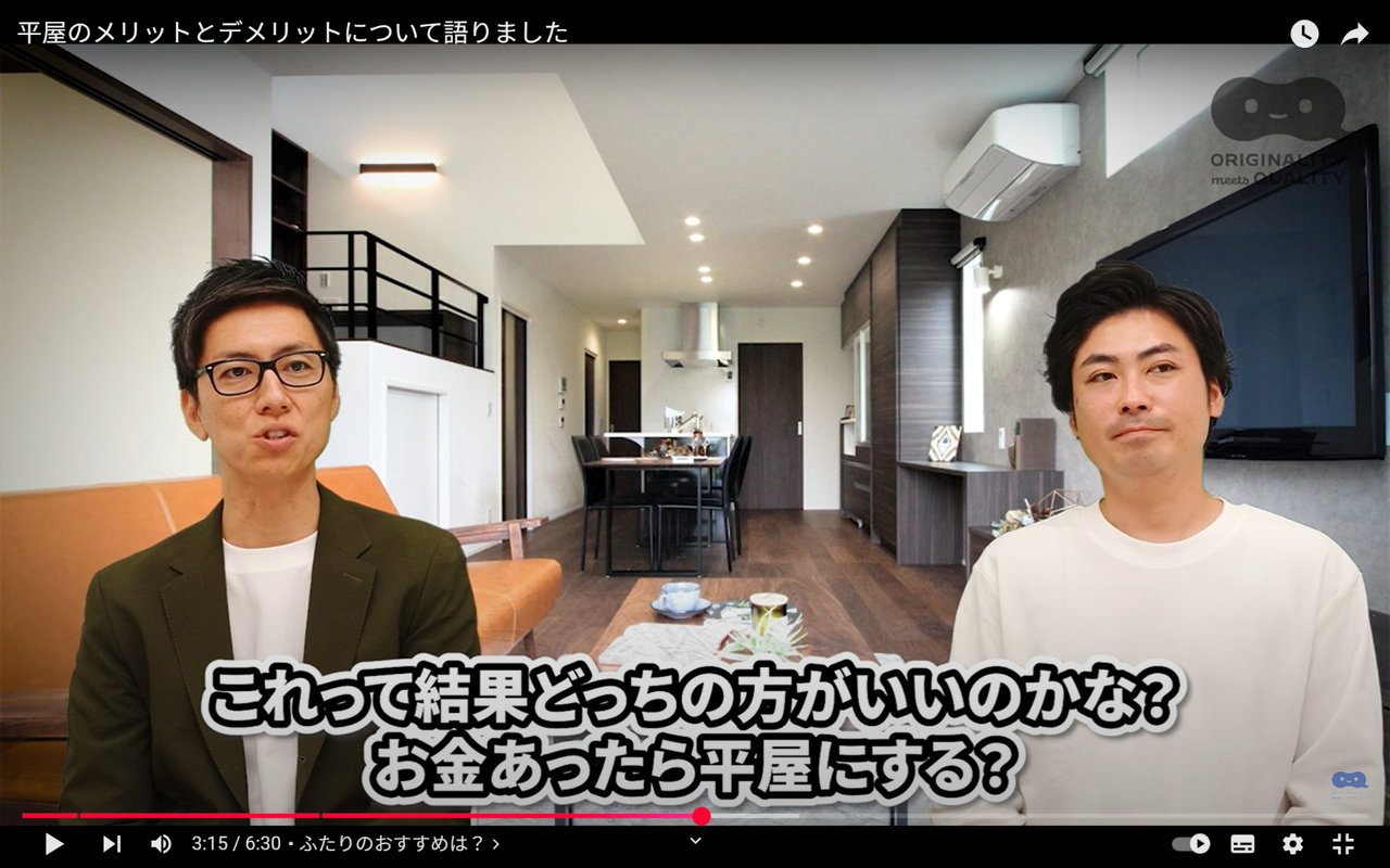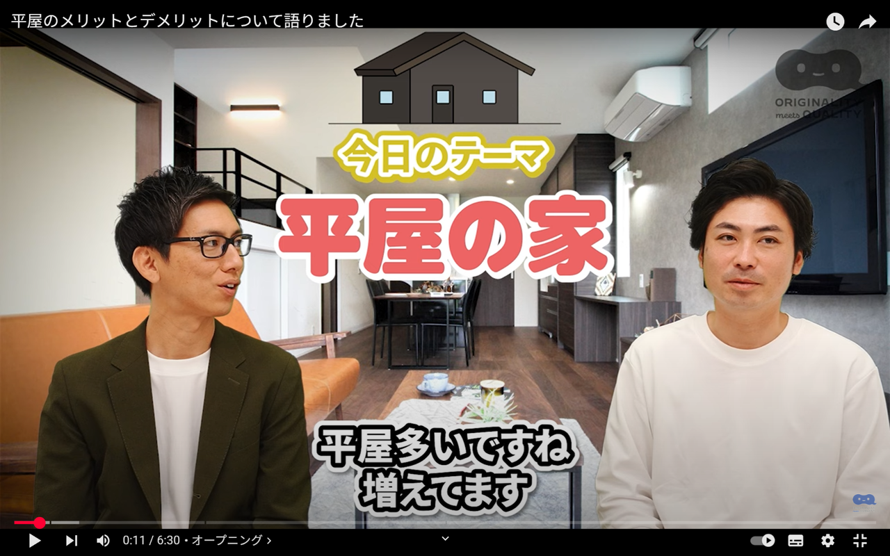 【You Tube】平屋のメリットとデメリットについて語りました
