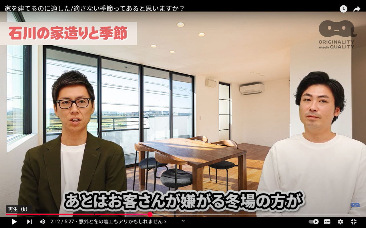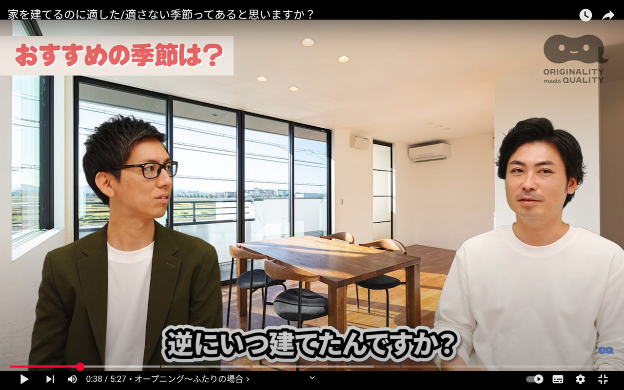 【You Tube】家を建てるのに適した/適さない季節ってあると思いますか?