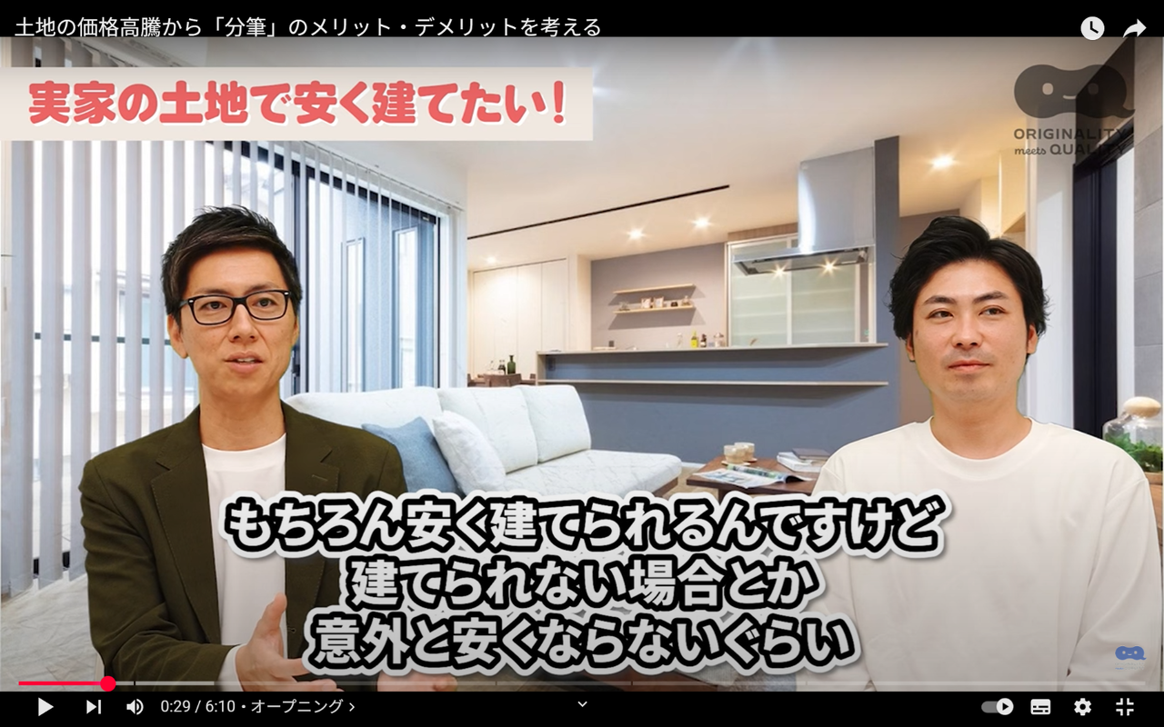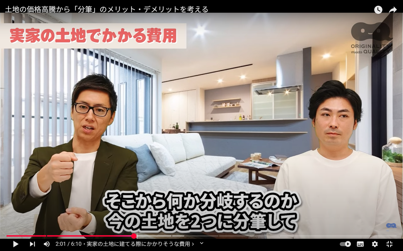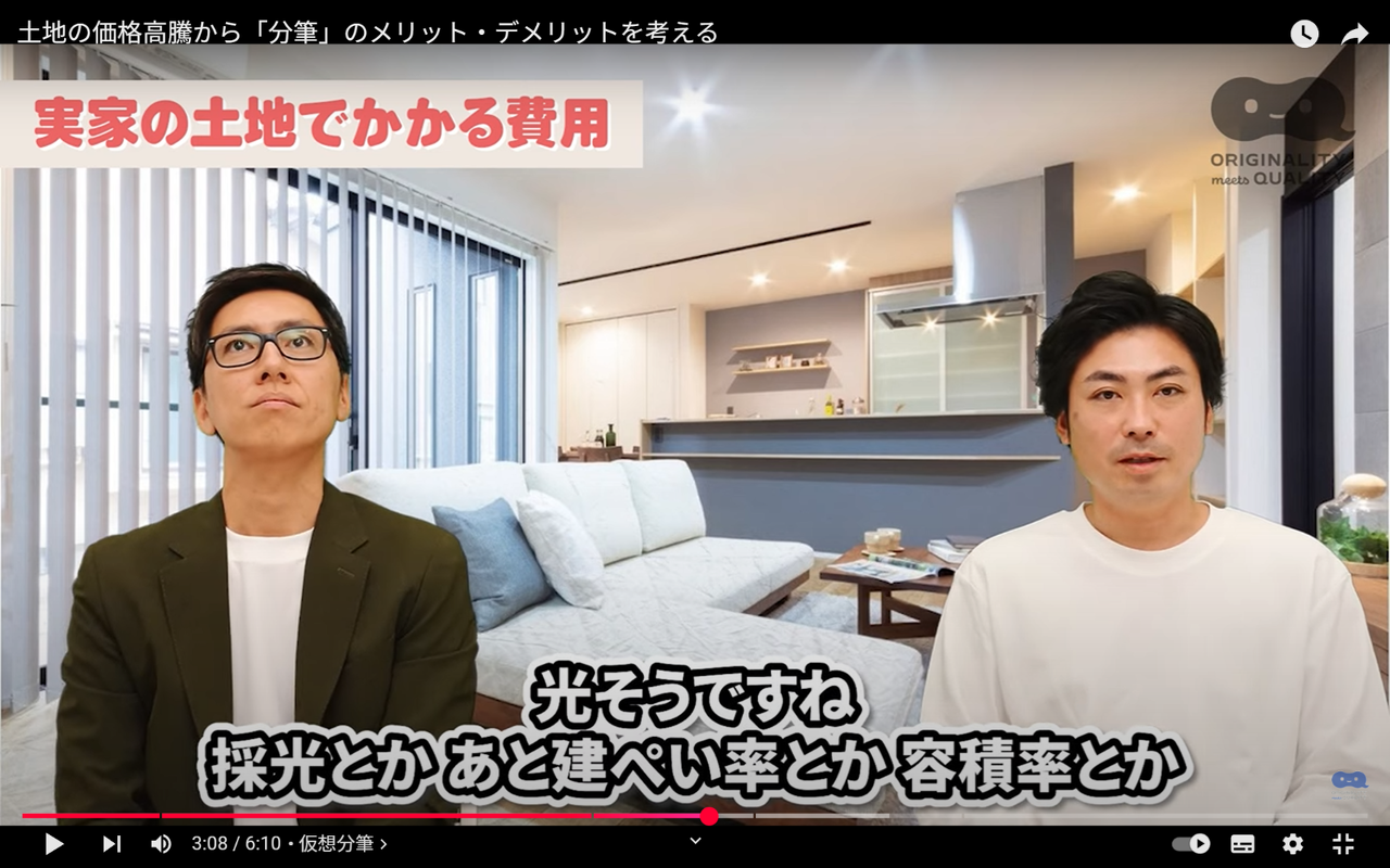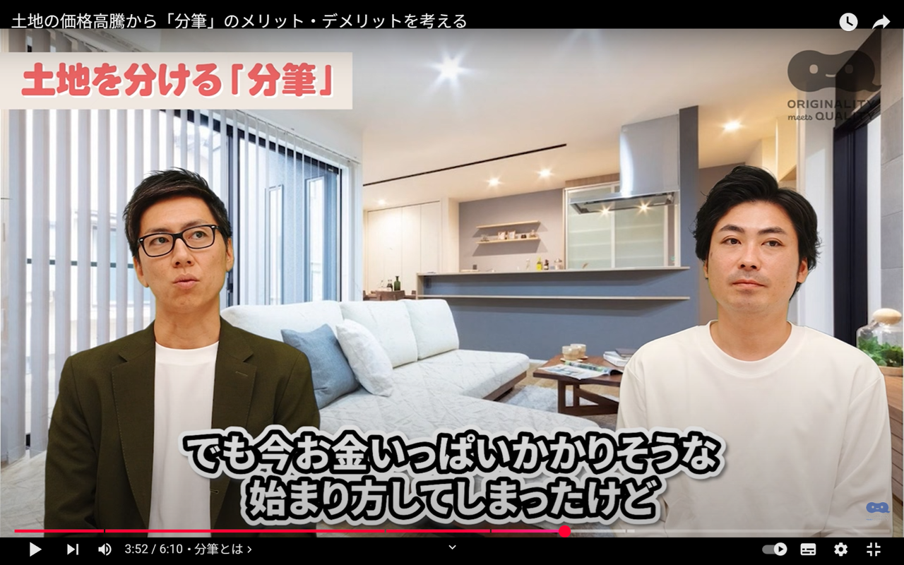 【You Tube】土地の価格高騰から「分筆」のメリット・デメリットを考える