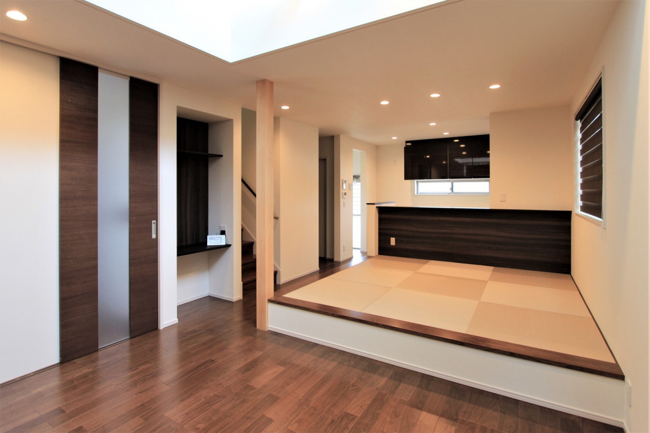 リビングとダイニングを緩やかに仕切るように、LDKの中心に配置した和室。
