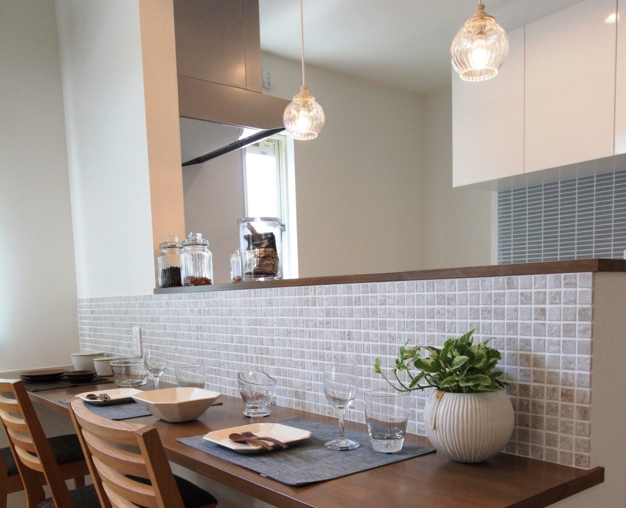 写真はモザイクタイルをあしらったカウンター。