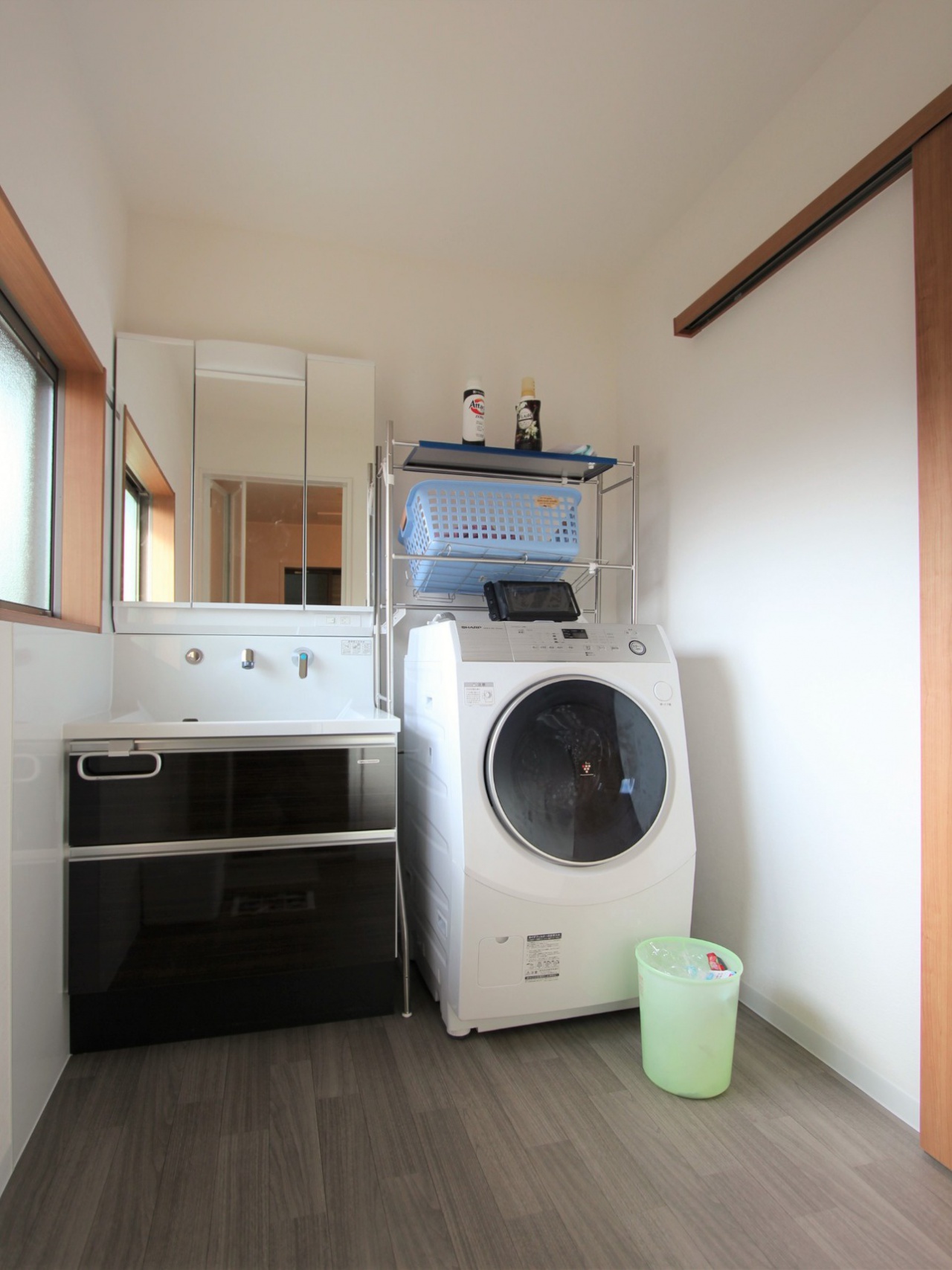 床と壁を貼り替え、使いやすい洗面脱衣所に生まれ変わりました。