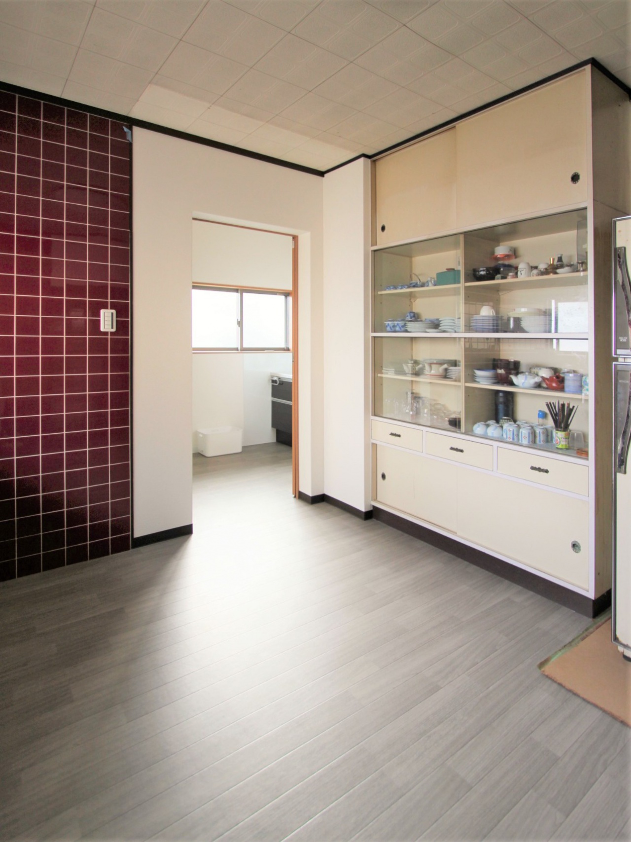 出入口付近の収納を撤去し、床(クッションフロア)を張り替えました。