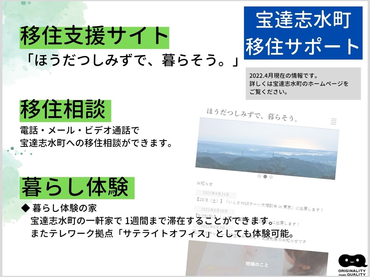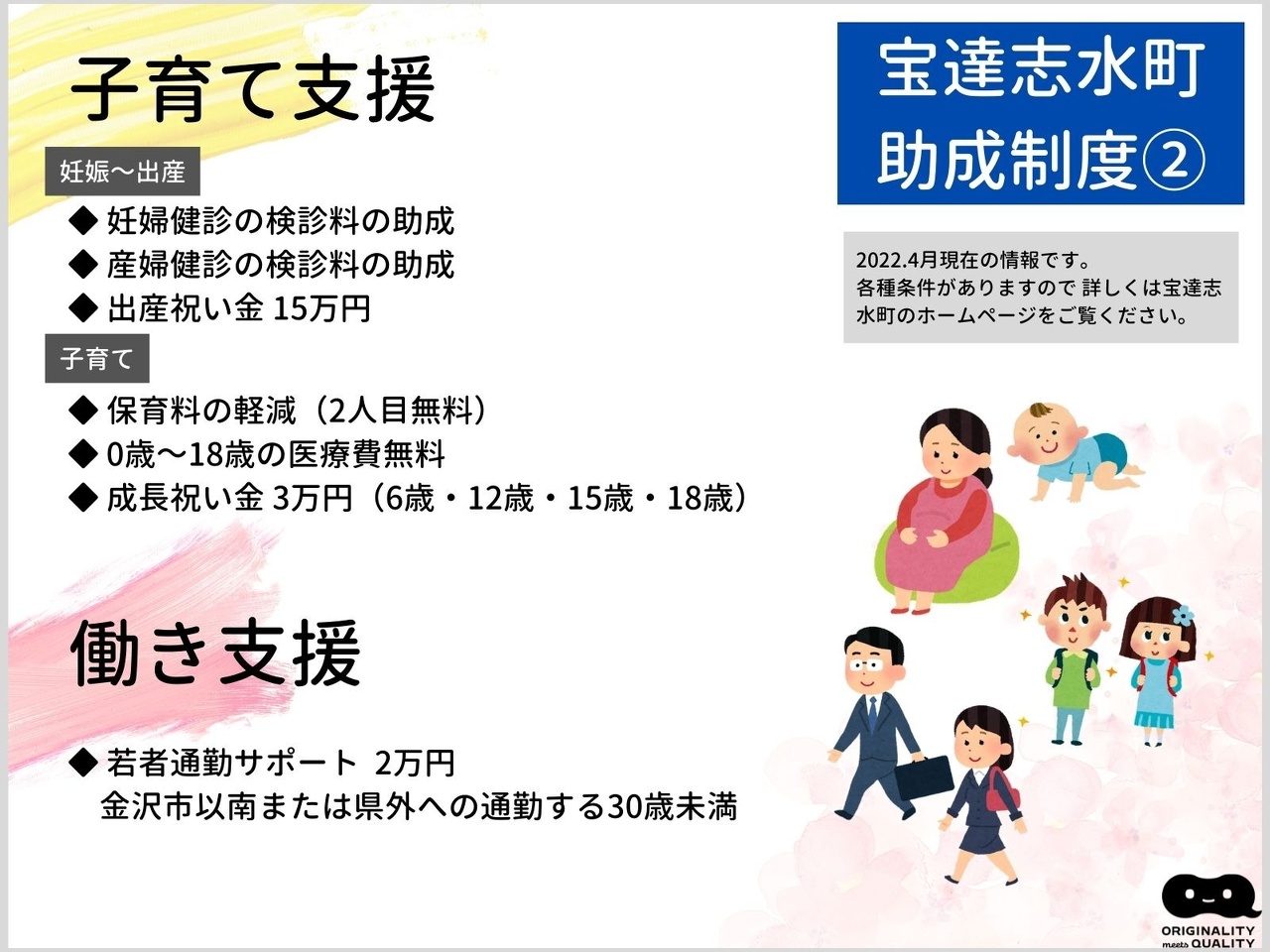 | ※2022年4月現在の情報です。各制度条件があります 【宝達志水町ホームページ】移住・定住について |